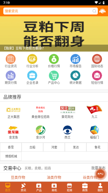 1、中国粮油信息网app,在这里有行业资讯、行业分析、价格行情等各种服务资讯板块,还有各种品牌推荐,当然你也可以在顶部搜索框输入你想要了解的咨询内容