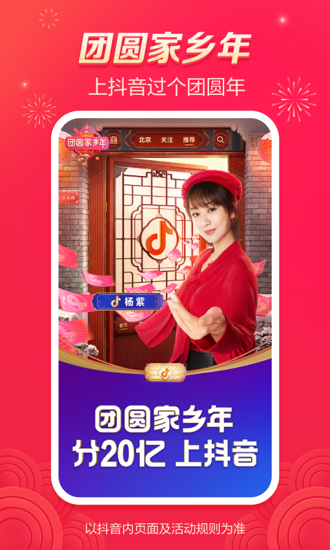 3、抖音灯笼码打开抖音应用,点击主页左上角的“ 20亿”进入团圆家乡年活动页面。