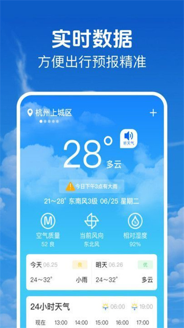 逐小时天气预报,轻松查阅24小时内天气变化,提早预防早晚温差过大