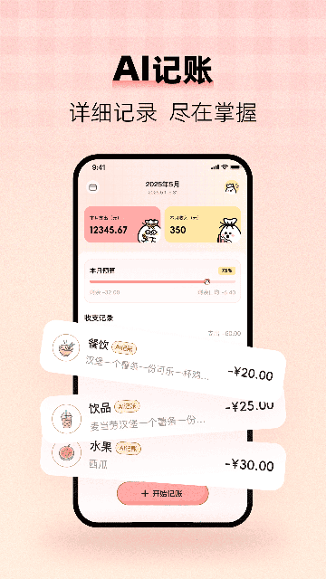 甜心记账是一款专为现代人设计的智能记账APP,致力于帮助用户轻松管理收支、优化消费习惯。无论是日常零花还是大额支出,只需两步即可完成记录,自动生成收支图表与分类统计,让财务状况一目了然。支持语音输入、多人协作、云端同步等功能,结合趣味化交互设计,让记账不再是枯燥的任务,而是充满乐趣的生活仪式。无论是个人用户还是家庭团队,甜心记账都能成为你的贴心财务管家,助力理性消费与财富规划。点击下载,让甜心记账帮你告别财务混乱,轻松掌控每一笔收支!